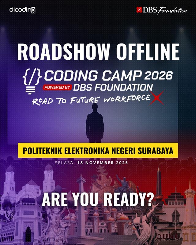 Sehubungan dengan adanya kegiatan ” Coding Camp 2026 powered by DBS Foundation goes to Politeknik Elektronika Negeri Surabaya “, kami mengundang para mahasiswa Departemen Teknik Informatika dan Komputer untuk hadir di acara Sosialisasi Coding Camp 2026 pada :